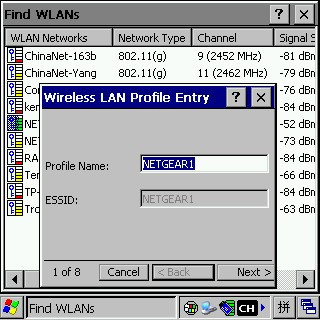 4、接下來點(diǎn)擊無線設(shè)置彈出菜單中的“Find WLANS”菜單項(xiàng),待搜索完后,選擇可以訪問的無線路由,在彈出菜單里選擇“Create profile”,如下圖所示: